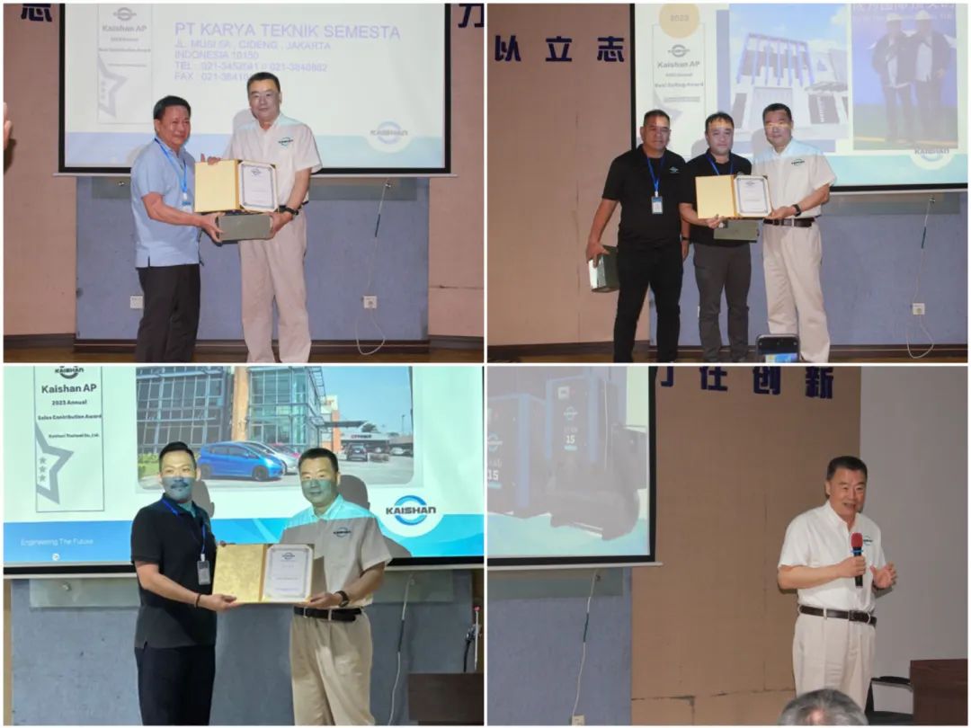 曹克堅(jiān)董事長出席了會議,他向三家獲得最佳銷售、貢獻(xiàn)獎的馬來西亞、泰國、印度尼西亞經(jīng)銷商頒發(fā)了獲獎證書。