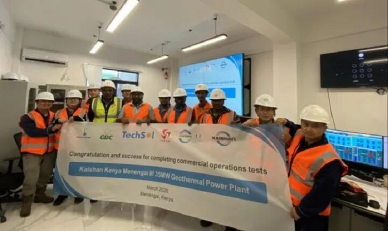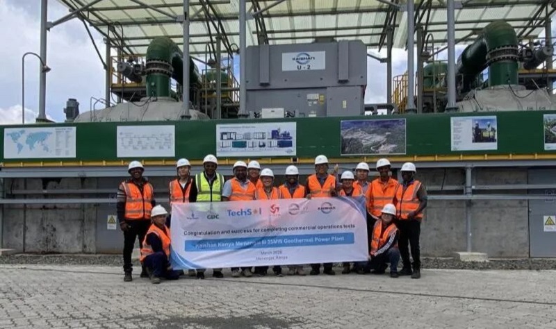 3月5日,開山集團股份有限公司在肯尼亞Menengai地?zé)釁^(qū)全資擁有并建設(shè)的第一座地?zé)犭娬荆↘K01——Kaishan Kenya 01電站)順利完成了從2月2日開始的為期30天穩(wěn)定性運行測試,至此,該電站全部的獨立第三方見證測試均已完成,明天,獨立工程師將頒布證書并通知肯尼亞國家電網(wǎng)公司KPLC,宣告這座電站實現(xiàn)商業(yè)運行(COD)。