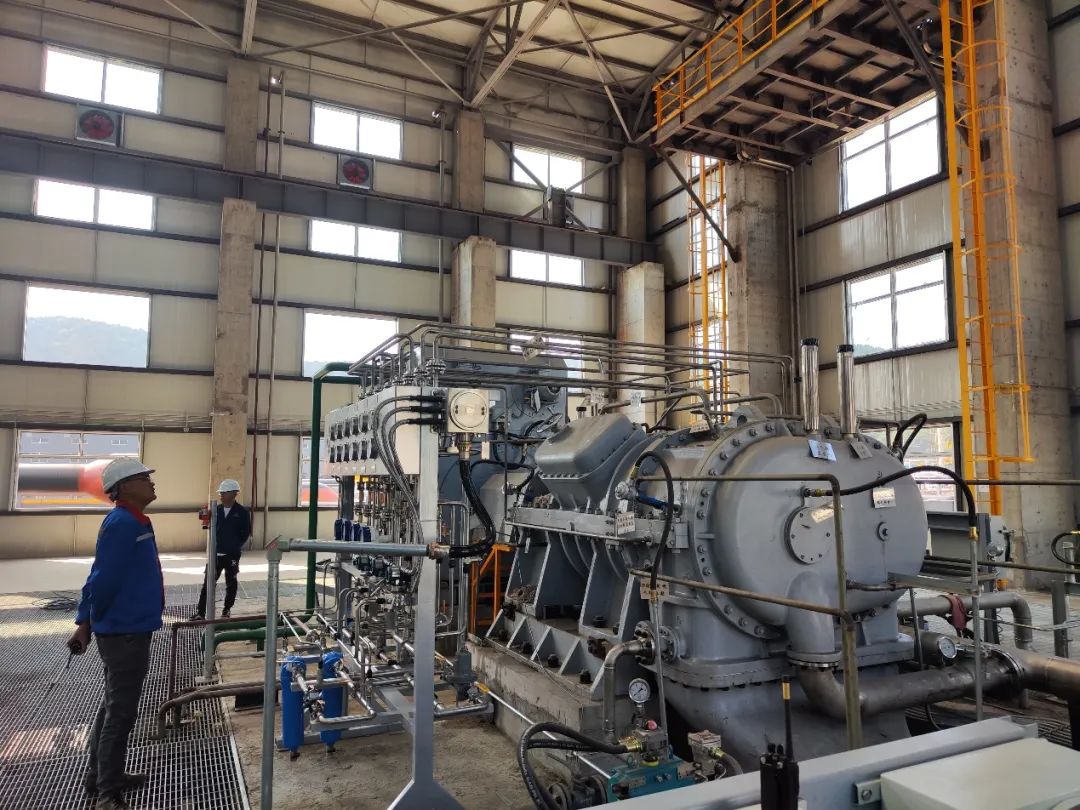 伴隨著國家大力實施“碳達峰、碳中和”和“氫能源回收利用”的發(fā)展機遇。開山氣體壓縮機在已有工藝介質(zhì)氣壓縮多年成熟應(yīng)用經(jīng)驗的基礎(chǔ)上,又開發(fā)了千立方米流量級別、更大壓比的KSG844型超大流量工藝螺桿壓縮機系列,壓縮機重量近60噸,最大容積流量可達1600m3/min),堪稱“大國重器”。該系列超大流量工藝螺桿壓縮機組是迄今為止國內(nèi)轉(zhuǎn)子直徑最大、單機流量最大的工藝螺桿壓縮機,將引領(lǐng)中國工藝螺桿壓縮機行業(yè)向“更大、更高”方向發(fā)展。