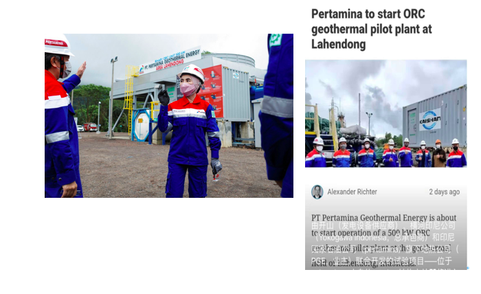 此次Lahendong實驗項目成功對PGE意義重大。此前,其CEO Nicke Widyawati女士訪問Lahendong地?zé)犴椖坎⒈硎竟居媱澖ㄔO(shè)210兆瓦的有機(jī)朗肯循環(huán)熱水發(fā)電項目。