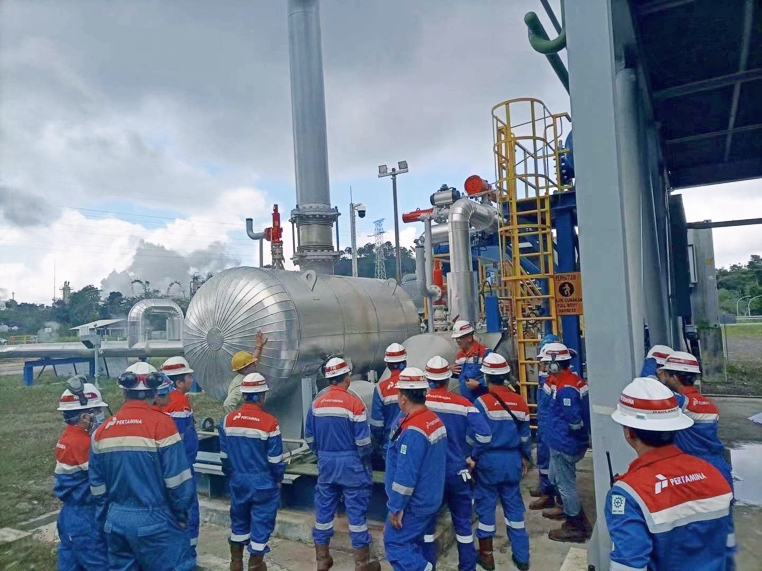 2021年7月PGE在其Lahendong地?zé)犭娬具M(jìn)行了500kW地?zé)嵛菜⌒碗娬緦嶒烅椖縀PC招標(biāo)。開山作為唯一電站設(shè)備供應(yīng)商向中標(biāo)總承包商——日本橫河(印尼)提供發(fā)電機(jī)組。今年年初該電站建成并網(wǎng),不幸的是,在進(jìn)行72小時運行測試時發(fā)生了電機(jī)燒毀事故,開山要求發(fā)電機(jī)制造商(日本公司)供應(yīng)了替代電機(jī)。日前,PGE實驗項目已順利通過驗收。